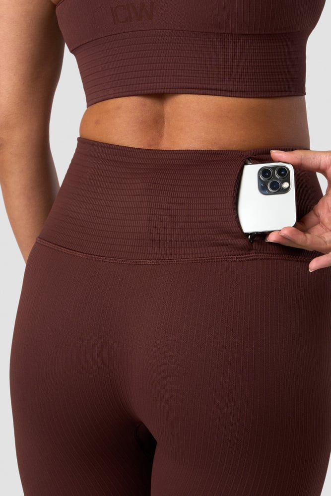 Seamless trainingsleggings met zak in de tailleband. Je vroeg, wij leverden. Onze meest populaire collectie, Define Seamless, is nu hier in een ribbed versie. Het seamless materiaal is zacht, rekbaar en flexibel, wat resulteert in een kledingstuk met grote bewegingsvrijheid en pasvorm.